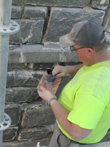 After sealing out infiltrating water, FOSC’s highest priority in preserving the Stone Church has been the steeple. The towering spire that creates the Stone Church’s signature profile is the only one of three such Elbridge Boyden towers still standing. Erosion of mortar over the years has led to stone cracking and displacement of important structural elements. Two very similar Boyden towers, one in Brattleboro, VT and one in Newport, RI have been rebuilt.